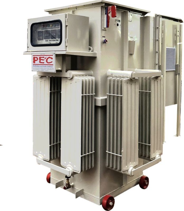 PEC is an iso 9001:2015, NSIC-CRISIL, Dun Bradstreet (862376458), IEC, FGI, DIC, EEPC & EXIM registered company. PEC’s Automatic Voltage Controllers/ Rectifiers have a robust design and give trouble-free service. we provide you the finest products designed and engineered by people & professionals who have experience and expertise in each sphere of activity right from testing, quality control, manufacturing & designing of these products for the last 35 years. we have with us the state-of-the-art infrastructure with excellent and advanced capabilities to manufacture world-class automatic voltage controllers with quality standards. TECHNOLOGY: Voltage Regulator is the essential and main functional part of AVC equipment. our voltage regulators are liner-type regulators with rolling contact carbon rollers. we use heavy-duty carbon rollers which do not need any replacement for at least 20-25 years. COMMITMENT: we have a commitment to provide a FIVE-YEAR GUARANTEE for all the equipment supplied by us. After-sales service is the backbone of our organisation. We have developed and installed industrial Automatic Voltage Controller throughout India which are suitable for 100% continuous duty cycle supplied up to 5000 kva which have more than 99.5% efficiency. ADVANTAGES OF INSTALLING AVC : Customer will certainly have the following advantages in case they are getting higher input voltage i.e. more than 230 volts single phase/400 volts three phase. • Reduction in breakdown of electrical equipment • Energy saving 5-10 % on motor load and 15-25% on lighting load. • Reduction in mdi by 10-15%. • Improvement in power factor. • Depreciation allowance @80% as per income tax act. • Uniform quality of end products. Automatic Voltage Controller primarily consists of the following 1. Linear, Plus / Minus Type Vertical Rolling Contact Voltage Regulator In our voltage regulator, we are using heavy section of electrolytic grade rectangular copper strip instead of copper wire to minimize the losses & increase the efficiency of equipment. We are also using self lubricating carbon roller assemblies instead of ordinary carbon brushes which offer more reliability and trouble free performance of the equipment. 2. Double wound buck / boost type series transformer In our buck / boost transformer we are using crgo lamination to minimize iron losses. Coils of buck / boost transformer are wound with heavy section of multi strips electrolytic copper to minimize copper losses for getting better efficiency of the equipment. 3. Electronic Control Circuit and Meter Panel Automatic Voltage Controller consists of very simple electronic control voltage circuit for monitoring and controlling voltage, repair & maintenance of which is very easy. The regulator and buck / boost transformer are oil cooled, housed in same or separate sheet steel tanks. Radiators are provided for effective cooling. The coils of the voltage regulator & buck/boost transformers are vacuum-impregnated and oven dried as per IS. SPECIAL FEATURES Special Features of PEC Make Automatic Voltage Controller: EFFICIENCY The efficiency of PEC make Automatic Voltage Controller is more than 98-99% in comparison to 93-97% of conventional make available in the market depending upon the input voltage range. Thus, a 500 kva conventional type stabilizer or conventional servo voltage stabilizers will consume additional power itself minimum rs. 80,000 p.a. (even when running at 60% load and 20 hours a day) on account of its lower efficiency by 2%.