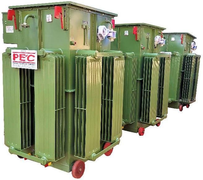 We engaged in the manufacturing of following products: Power distribution transformer up to 10 mva automatic voltage regulator servo voltage stabilizer up to 7000 kva rectifier transformer for electroplating , electrochemical, electrolysis, anodizing up to 25,000 amps. Cast resin epoxy transformer up to 5000 kva dry type transformer up to 5000 kva ultra isolation transformer up to 7000 kva variable voltage transformer regulator up to 8000 kva (0-35000 volts) Power Engineers Company is Manufacturer, Exporter & Supplier known for reliability and continuous improvement in the field of rolling contact type automatic voltage controller, automatic voltage stabilizer, electroplating, chemical process rectifiers and special purpose transformers. The systems are designed and supervised by a team of qualified engineers having more than 35 years of experience to achieve best possible quality to total customer's satisfaction. Introduction :In spite of best efforts by the State Electricity Boards, the voltage at consumer ends is never the required voltage. This is because of longer distribution lines and different loading at different time on Distribution Transformers. For example, a consumer near the Distribution station gets high Voltage but the farther most consumers may be getting low Volts.Most of the industries are working in the daytime, so loading on the transformer is more and generally, voltage is low in day time. In the night most of the units are closed and there is practical no domestic load, the voltage may be to the tune of 440-480 Volts.So, practically every industry needs system which may keep the voltage constant. To maintain the voltage stabilizers are available in the market for refrigerators, electrical machines and electronic equipments but these are of very low capacity. We have developed and installed industrial voltage stabilizer throughout India which are suitable for 100% continuous duty cycle supplied up to 5000 KVA which have more than 99. 5% efficiency.PEC have developed LINER TYPE REGULATOR WITH ROLLING CONTACT CARBON ROLLERS and installed up to 5000 KVA capacity. Which are suitable for 100% continuous duty cycle & having more than 99% efficiency. Commitment to provide an UNCONDITIONAL GURANTEE for FIVE YEARS. Industrial units achieve the under noted advantages after installing Automatic Voltage Controller. Reduction in breakdown of electrical equipments upto 60-80%. Energy saving : 5 to 10% on motor load & 15-25% on lighting load. Reduction in MDI : Definite reduction in MDI by 10-15%. Improvement in power factor : In case of high voltage only. Depreciation allowance @ 80% as per Income tax Act Uniform quality of end product. Voltage Optimisation is a term given to the systematic controlled reduction in the voltages received by an energy consumer to reduce energy use, power demand and reactive power demand. While some voltage 'optimisation' devices have a fixed voltage adjustment, others electronically regulate the voltage automatically. Voltage optimisation systems are typically installed in series with the mains electrical supply to a building, allowing all its electrical equipment to benefit from an optimised supply.Over Voltage Various technologies can be used to avoid overvoltage, but it must be done so efficiently so that energy savings resulting from using the correct voltage are not offset by energy wasted within the device used to do so. Reliability is also important, and there are potential problems inherent in running full incoming power through electro-mechanical devices such as automatic voltage controller.Under Voltage refers to voltage lower than the voltage at which equipment is designed to operate most effectively. If the design of the VO does not take into consideration voltage drop over distance to remote power users, then this may lead to premature equipment failure, failure to start up, increased temperature in the case of motor windings and loss of service.Effects On Electrical Loads :
